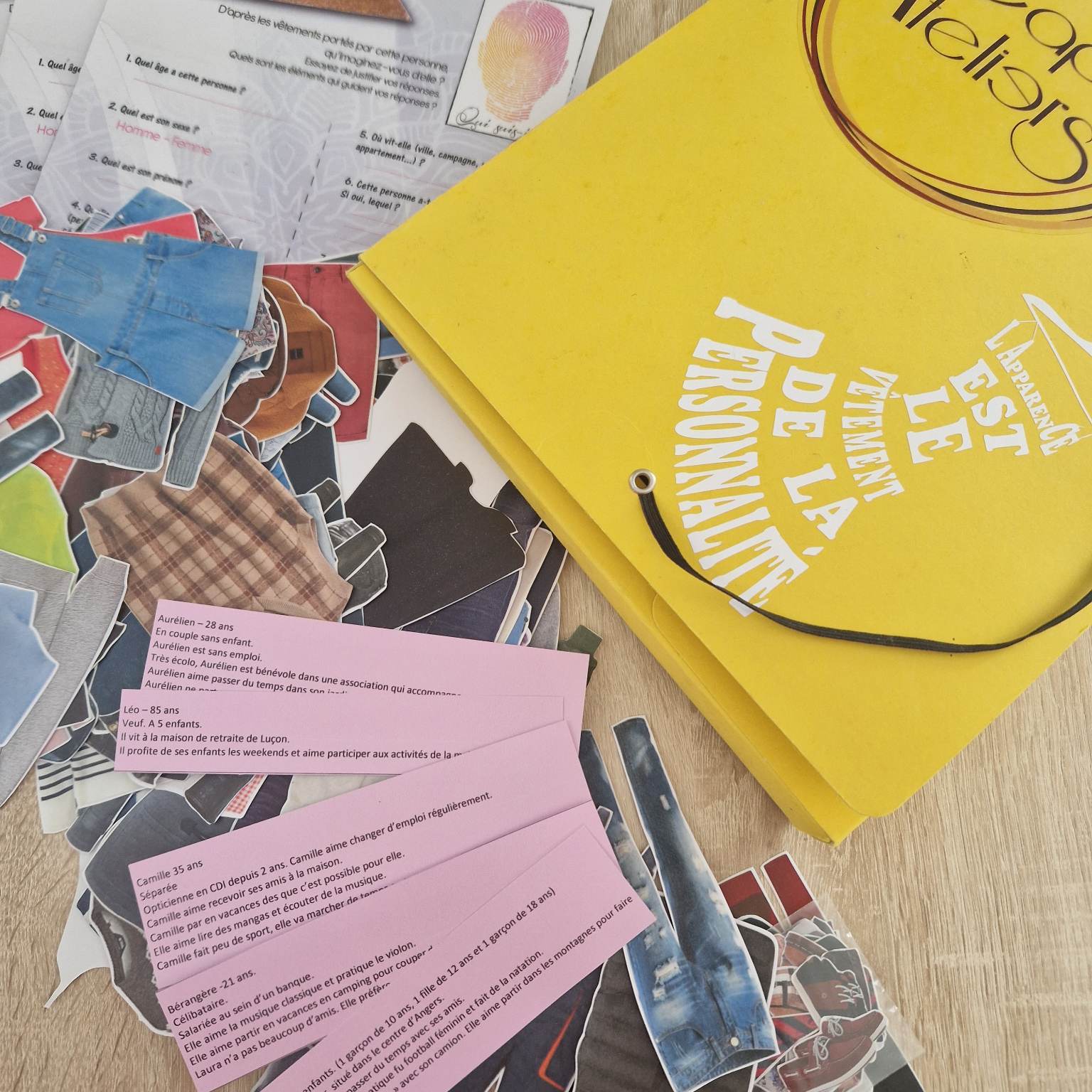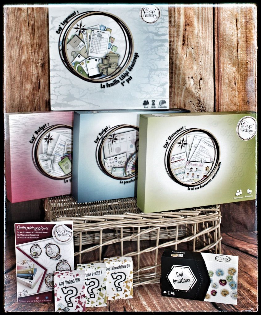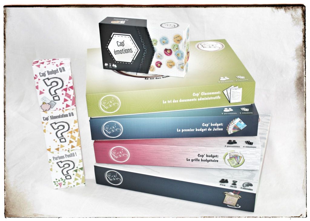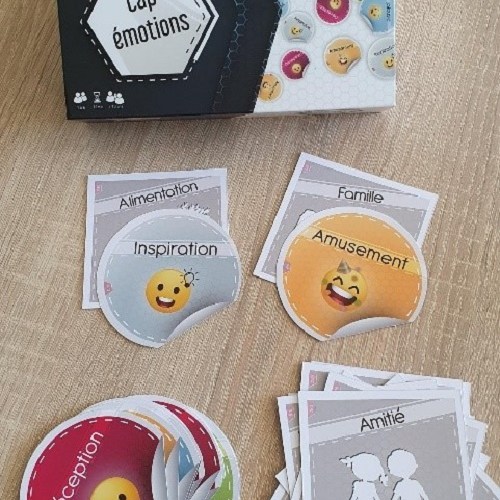 Pour rendre plus interactifs mes ateliers, j’ai pensé et créé des outils à visée pédagogique. Ma sœur, formée dans les domaines du graphisme, m’aide pour l’aspect visuel et pour la fabrication. Toutes mes mallettes et jeux sont pensés et créés par mes soins de façon artisanale. (Boîtes, pions, notices, règles du jeu etc.)