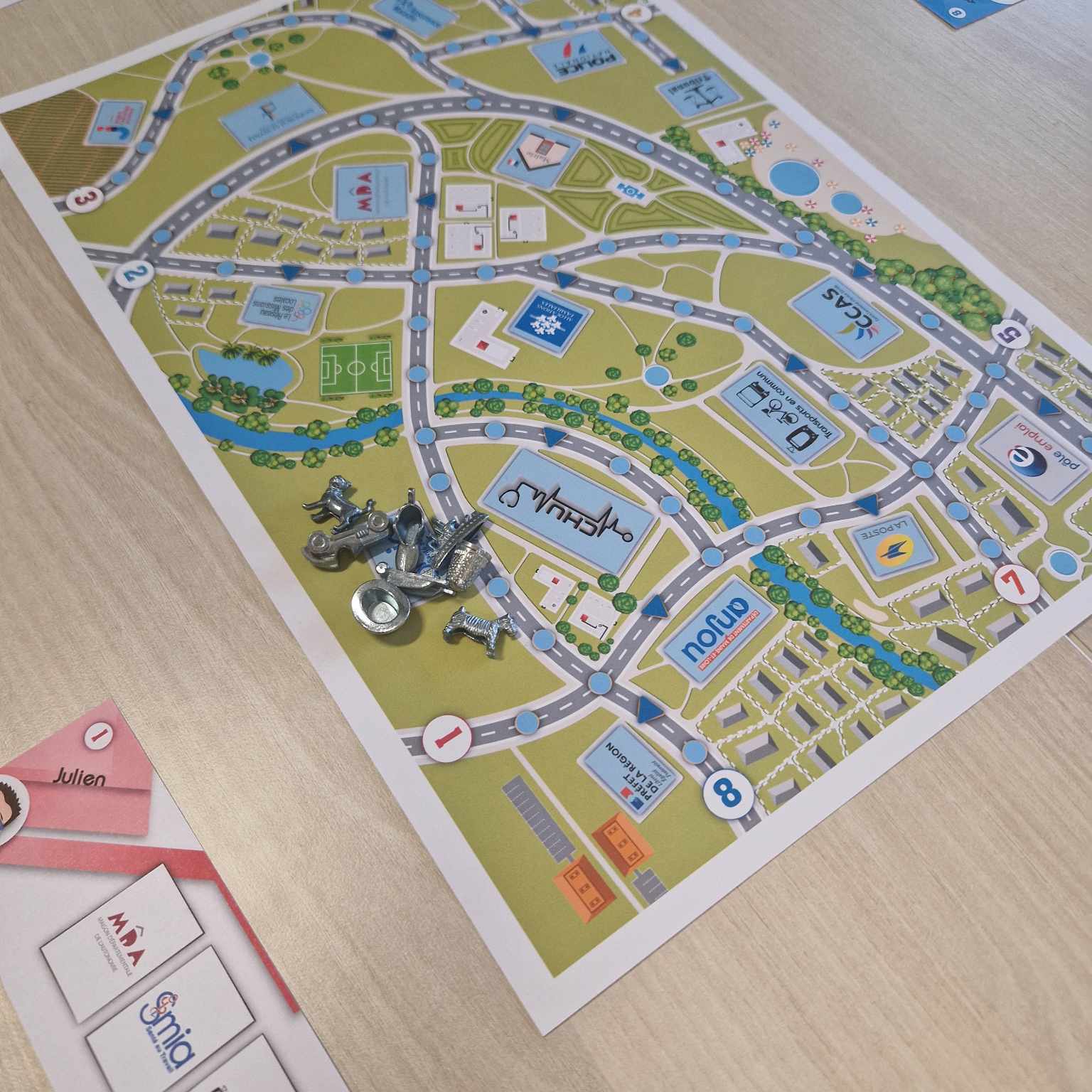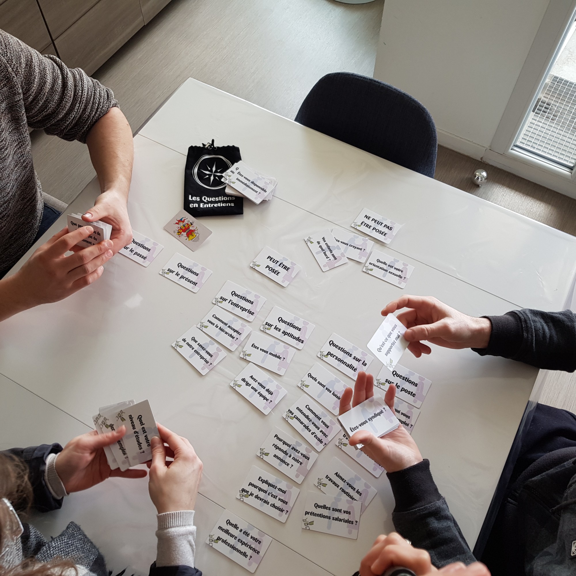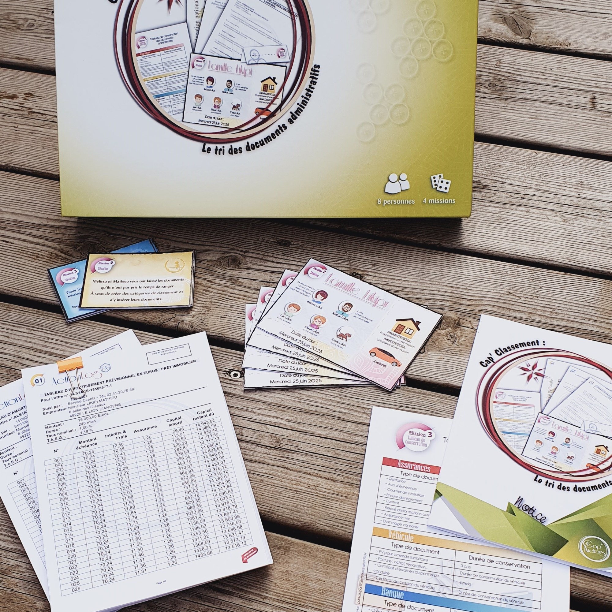 Pour rendre plus interactifs mes ateliers, j’ai pensé et créé des outils à visée pédagogique. Ma sœur, formée dans les domaines du graphisme, m’aide pour l’aspect visuel et pour la fabrication. Toutes mes mallettes et jeux sont pensés et créés par mes soins de façon artisanale. (Boîtes, pions, notices, règles du jeu etc.)