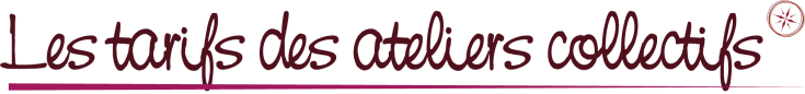 Voici un ordre d’idée de tarifs pour les ateliers collectifs. Pour ce tarif, je ne gère pas la location de la salle (cela se fait souvent dans vos locaux) et l’organisation des groupes.