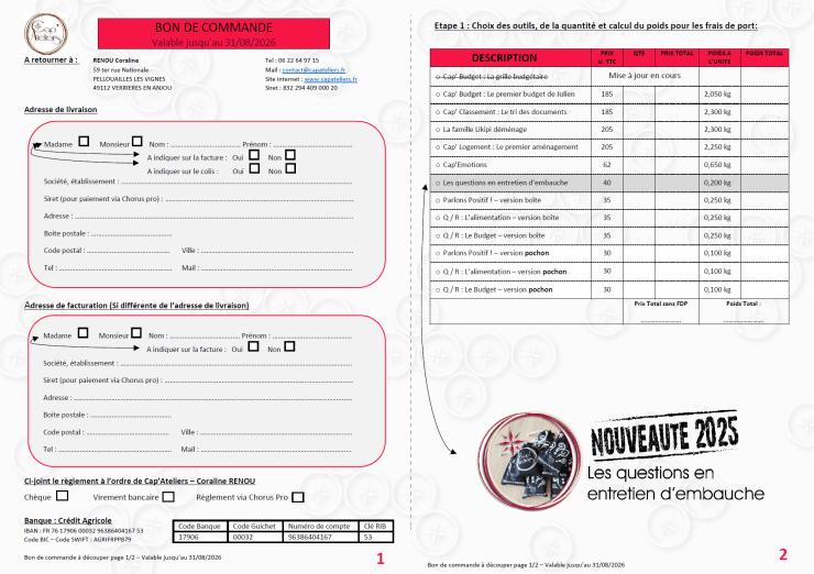Le bon de commande est à renvoyer complété à :